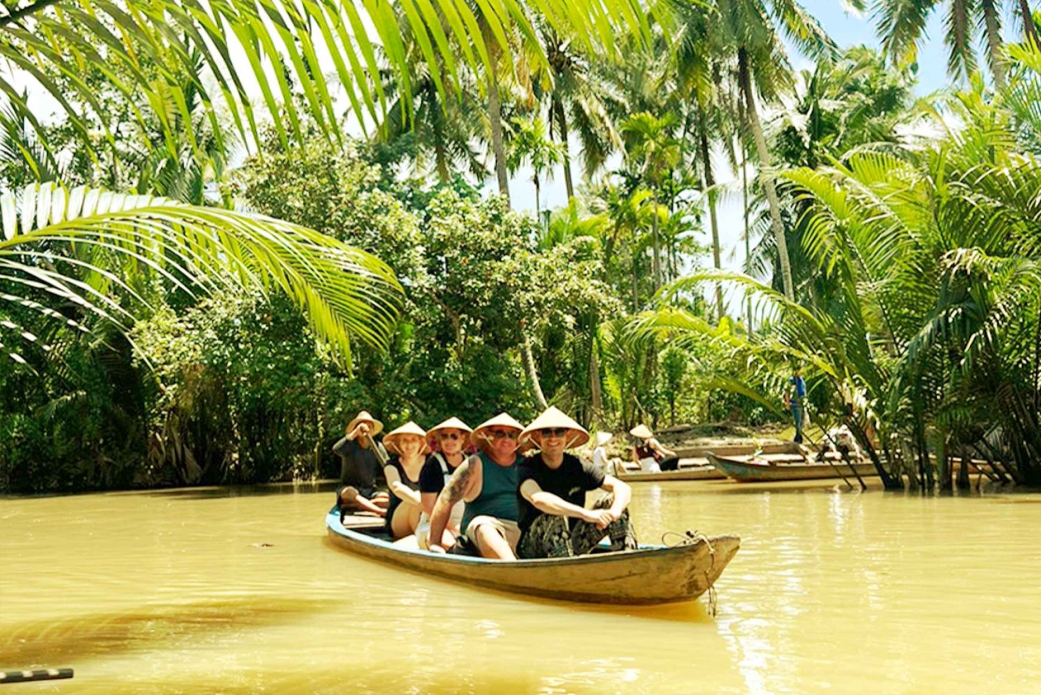 午前8時にホテルにお迎えに上がります。国道1号線沿いの田んぼを通り過ぎる1時間半のスムーズなバスの旅は、美しい田園地帯チュンルオンへと続きます。午前中の旅はモーターボートに乗り、バオディン自然運河を通ってミトー市に入ります。その後、運河沿いにあるミトーの果物市場を訪れます。ここでは地元の人々の日常生活に参加し、雰囲気を楽しむことができます。その後、ティエン川をクルーズしてクイ(亀島)へ向かいます。途中、漁港、高床式の家、船の建造工房、龍島、鳳凰島、ユニコーン島を見学します。昼食は果樹園の中心で、島民による「南ベトナムの民謡」の演奏とともに提供されます。ココナッツキャンディ工場を訪れた後は、小さな運河での素晴らしい手漕ぎボートツアーは見逃せません。その後、「ココナッツの国」ベンチェ省へ向かい、「ガーデン・池・ケージ」と呼ばれる典型的な農業モデルを見学し、リラックスできるハニーティーを楽しみます。最後に、タンタック自然運河を船で下ってミトーへ戻る旅は、ヤシの木で覆われた満足感に満ち溢れています。その後、バスでホーチミン市へ戻ります。